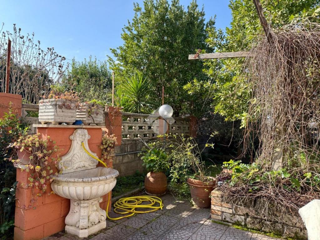 La proprietà è completata da due bagni finestrati, da un giardino privato esterno delimitato da mura che offre uno spazio riservato per il relax all’aria aperta, da un’ampia cantina con grotta e pozzo e da un garage di grande metratura con capienza per due o tre auto.